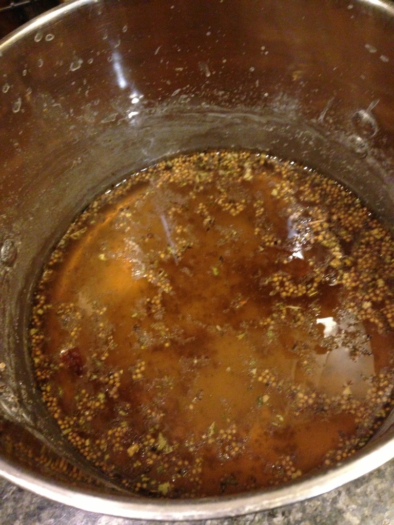 So here’s the update for my corned beef making. I have two brines cooling on the counter over night. I’m not sure how I’m going to fit them in the fridge to cool but I think with some of my huge canning jars and a little shifting I can get them in there.