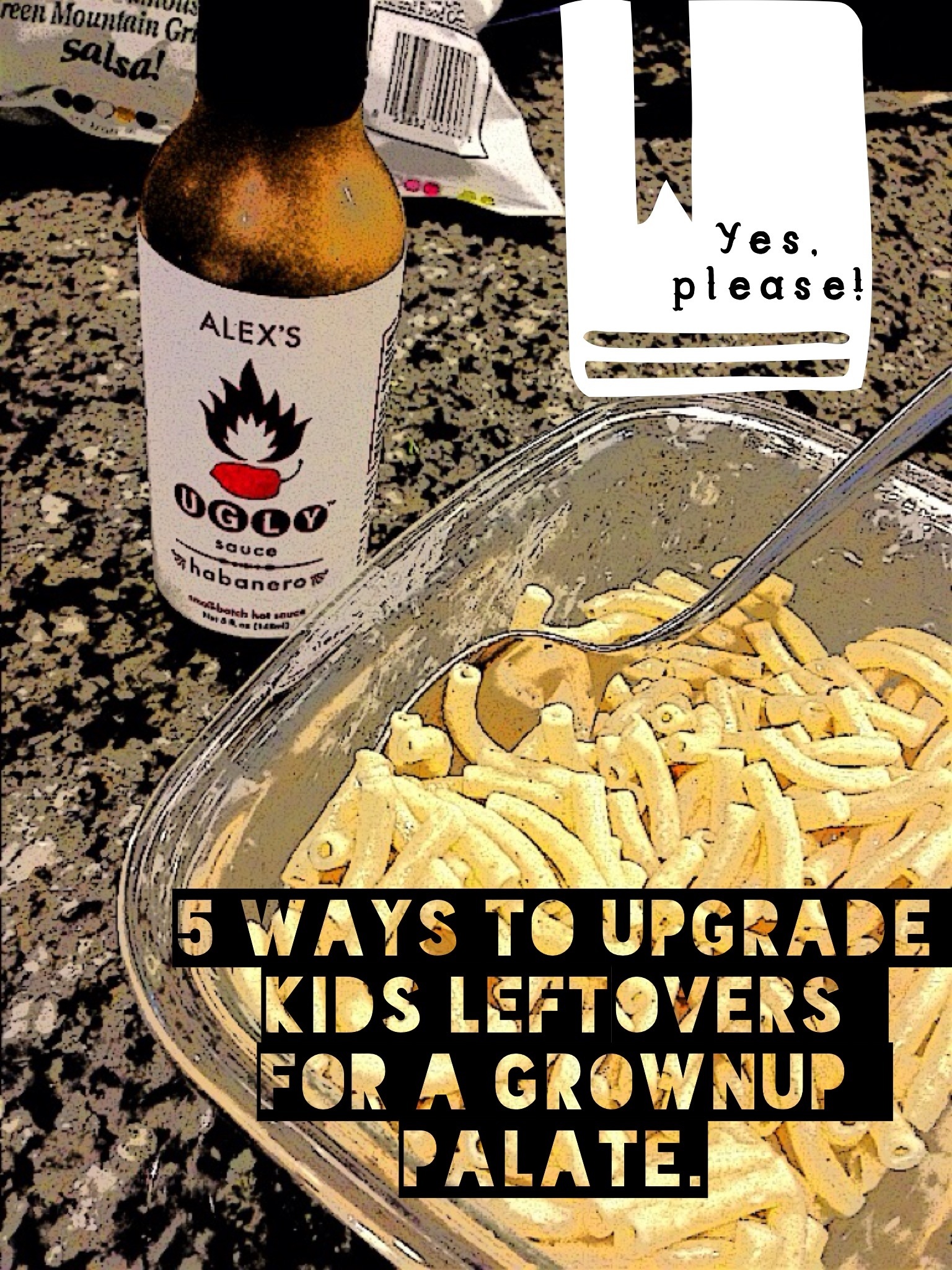 So let’s assume the majority of kids’ leftovers are Mac and cheese, rice, pasta. Those are the bland ones at least. Those are the ones that need a little pizazz.