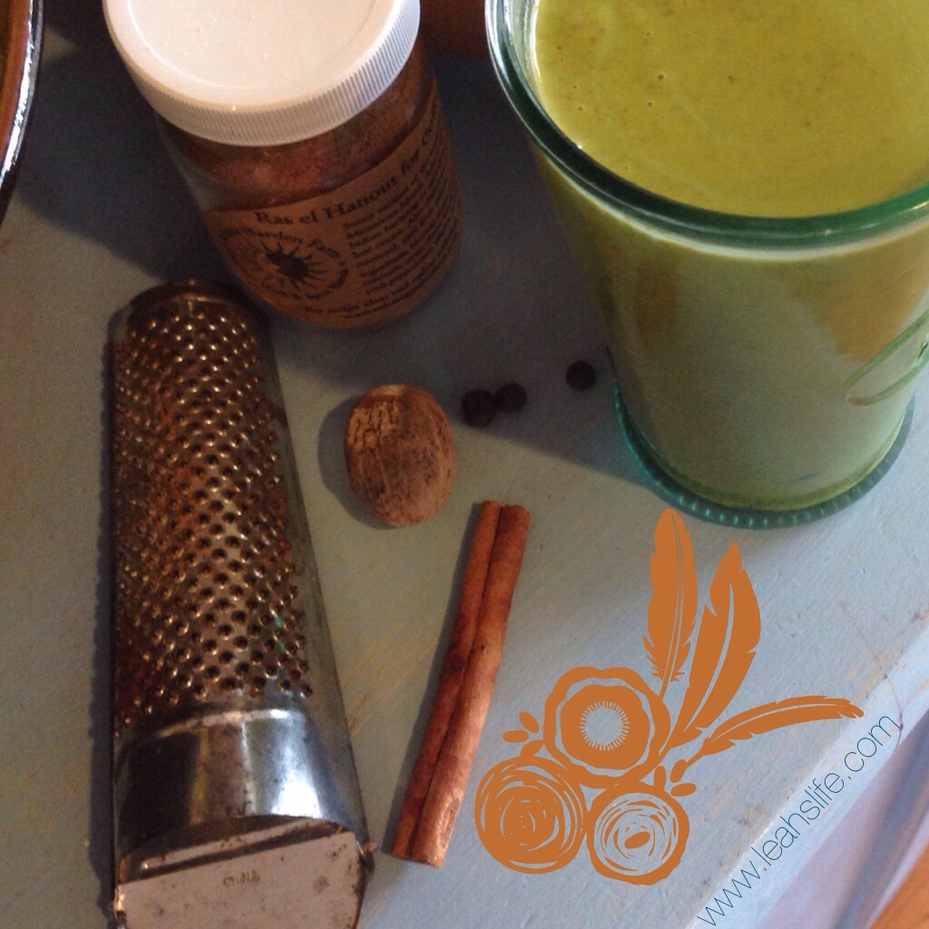 Blend. You can finish the smoothie off with a swirl of maple syrup or boiled cider and a fresh sprinkling of grated cinnamon and nutmeg.