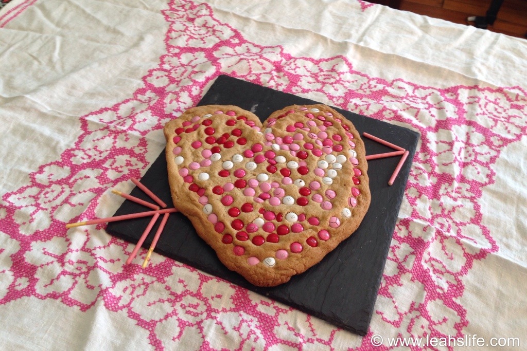 This September, my son asked for a giant cookie ( here is the recipe link)to bring in for his school birthday party. The kids had fun modifying it for Valentine’s Day.
