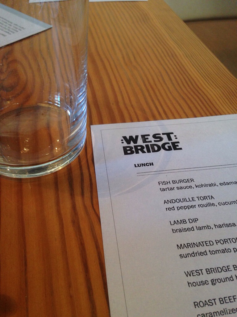 West Bridge has a beautiful rustic/industrial vibe (if that makes any sense – lots of nice wood and metal). It is very light inside with windows on both sides. The menu is small but everything is delicious.
