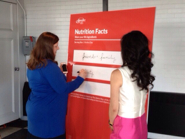 The event hosted by Alpine Lace, was a nice way for us to have fun learning the rhumba, we also had a chance to think about the ‘ingredients’ that are most important in our lives, and lastly we tasted Alpine Lace and had the opportunity to pair it with different fruits, vegetables, and condiments. My life ingredients were: friends & family, creativity, and the great outdoors.