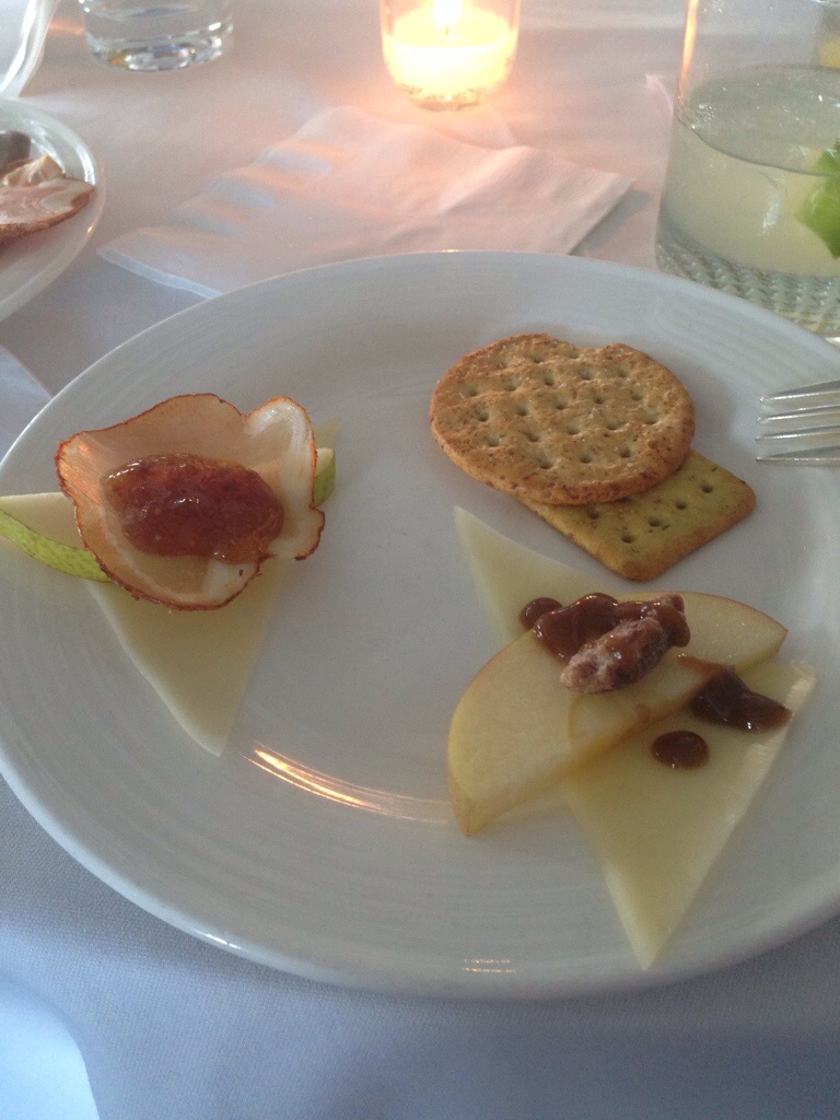 2) Alpine Lace, a slice of apple, a candied walnut and a drizzle of balsamic vinegar