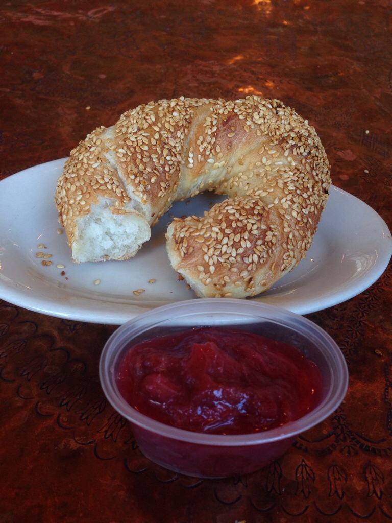 Spoon sweets can be bought in Sofra’s fridge, you can order a simit with spoon sweets, or indulge in my favorite semolina pancakes served with spoon sweets. The sweets change with the season. Rhubarb is my favorite so get in and enjoy while it lasts.