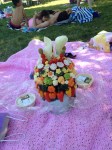 The party: It was my daughter’s 10th birthday and we had planned a sleepover and a day at the pool. I had the Crudité Creations delivered that afternoon right before we headed out. During adult swim the children walked right by the pretzels and chips and indulged in this blooming tower of vegetables. 1/2 the fun of eating it was figuring out what each flower was made of.