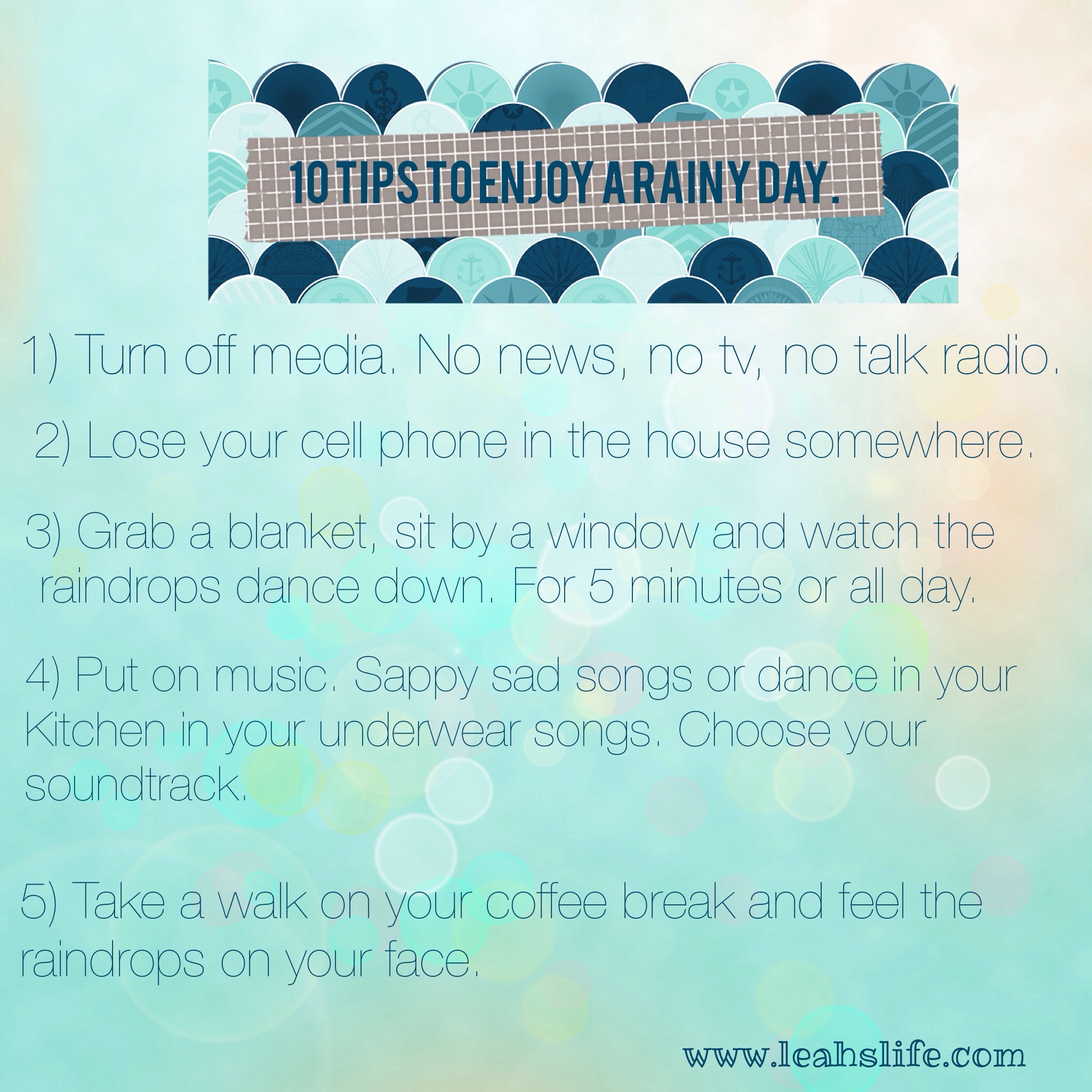 Lol – This is one of my few weeks when they are both in all day camp and my husband is around to help with pick up and drop off. I guess I might need a 10 things on a rainy day with kids… It would look very different!