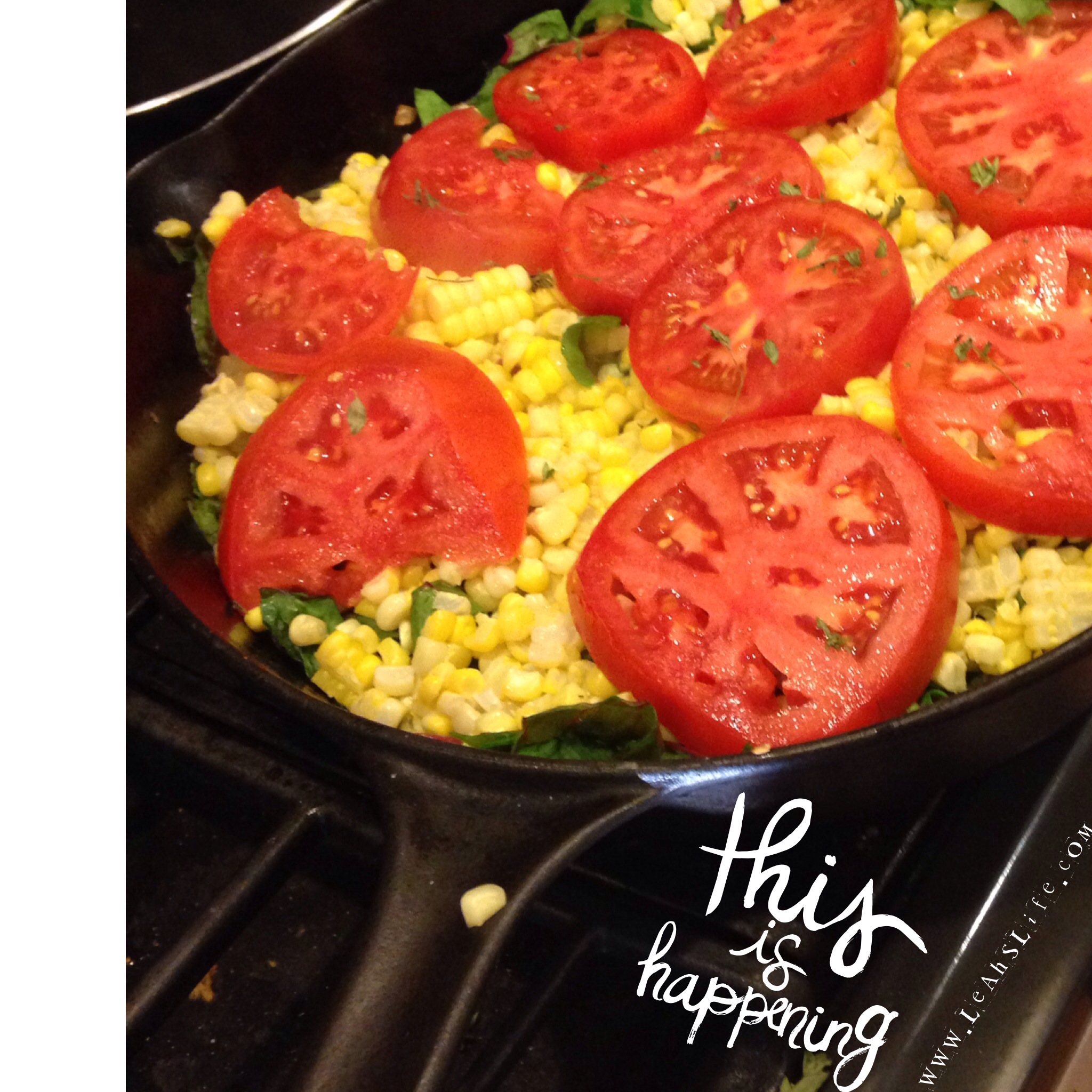 10- Put the cast iron pan under the broiler until the cheese is golden and the tomatoes blister a little.