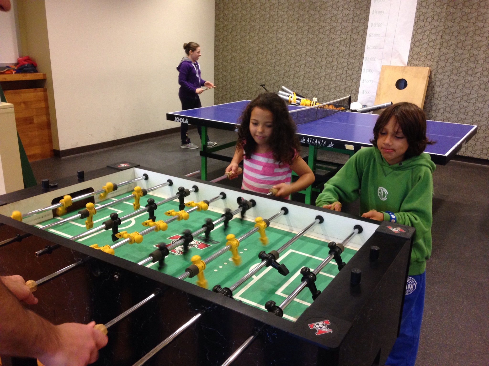 We thought about Laser Tag, Trampoline Parks, and other outings but the best part about a sleepover is hanging out with friends and all the outings required a bunch of driving. Instead we took a few local spots and wrote up some clues to create a Birthday adventure quest around town including a few of the birthday boys favorite things- Ping Pong (at daddy’s office), video games (at lanes and games), French Fries (at Celebrity Pizza – but hijacked by birthday boy and redirected to McDonalds), Movie (at home) and homemade pizza (by the big sisters) follower by a cake filled with fresh raspberry cream(by Party Favors)