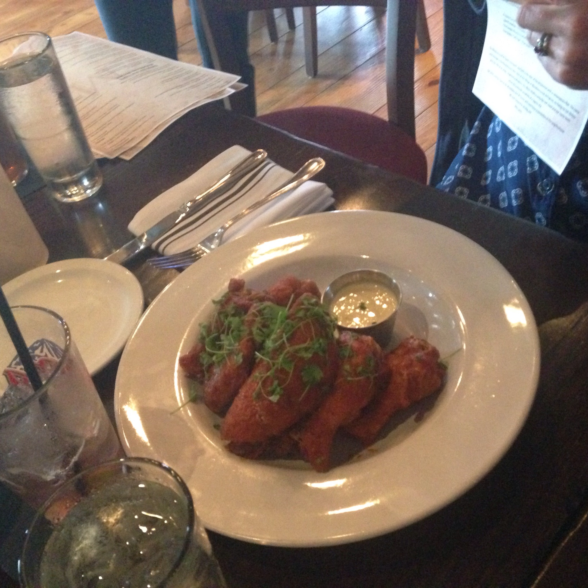 Fried pickles with a tangy, nicely spiced dipping sauce. It tasted like a spiked Caesar salad dressing.