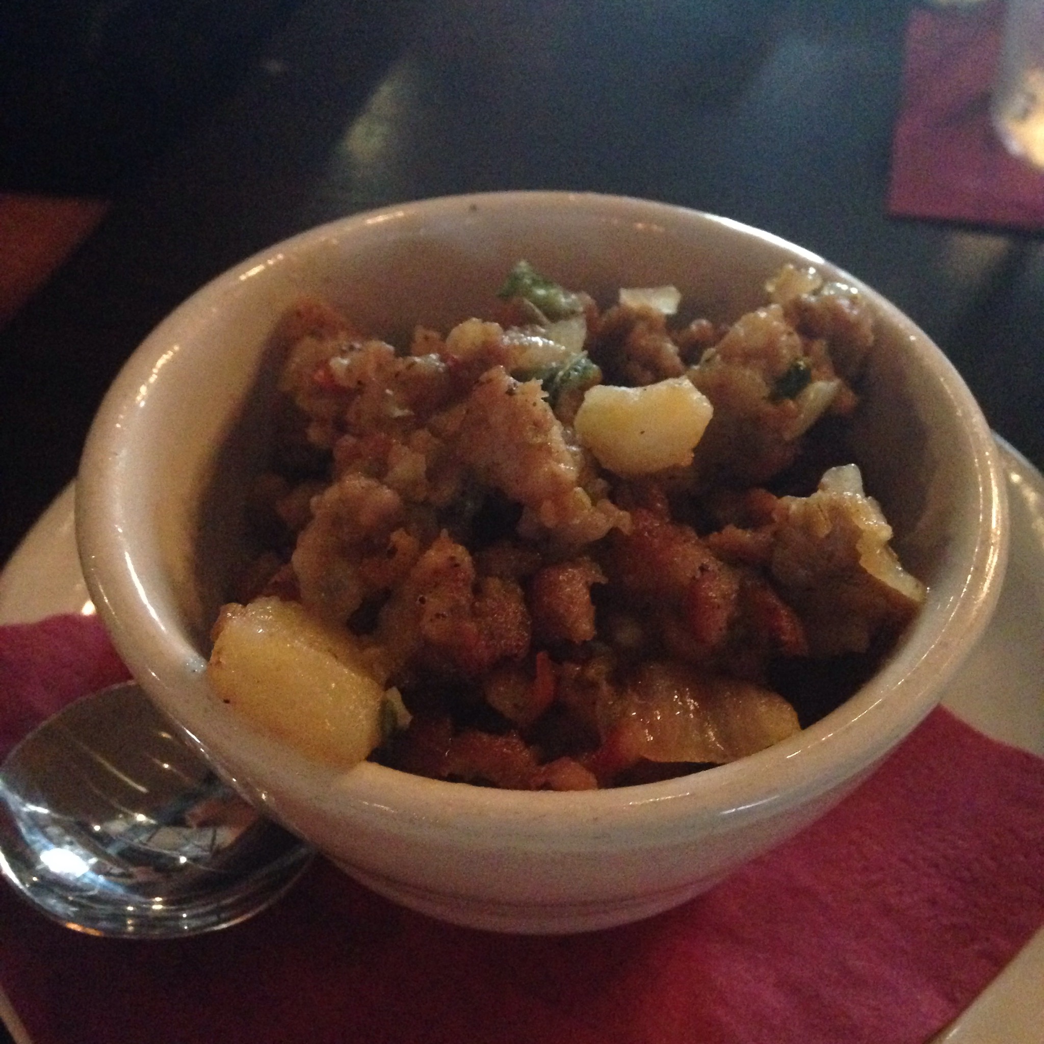 These meaty ribs were perfect for those who prefer a dry rub but lacked sauce for those who like sticky, lick your fingers ribs. Under the ribs was a tasty jalapeño slaw that really complemented the pork.