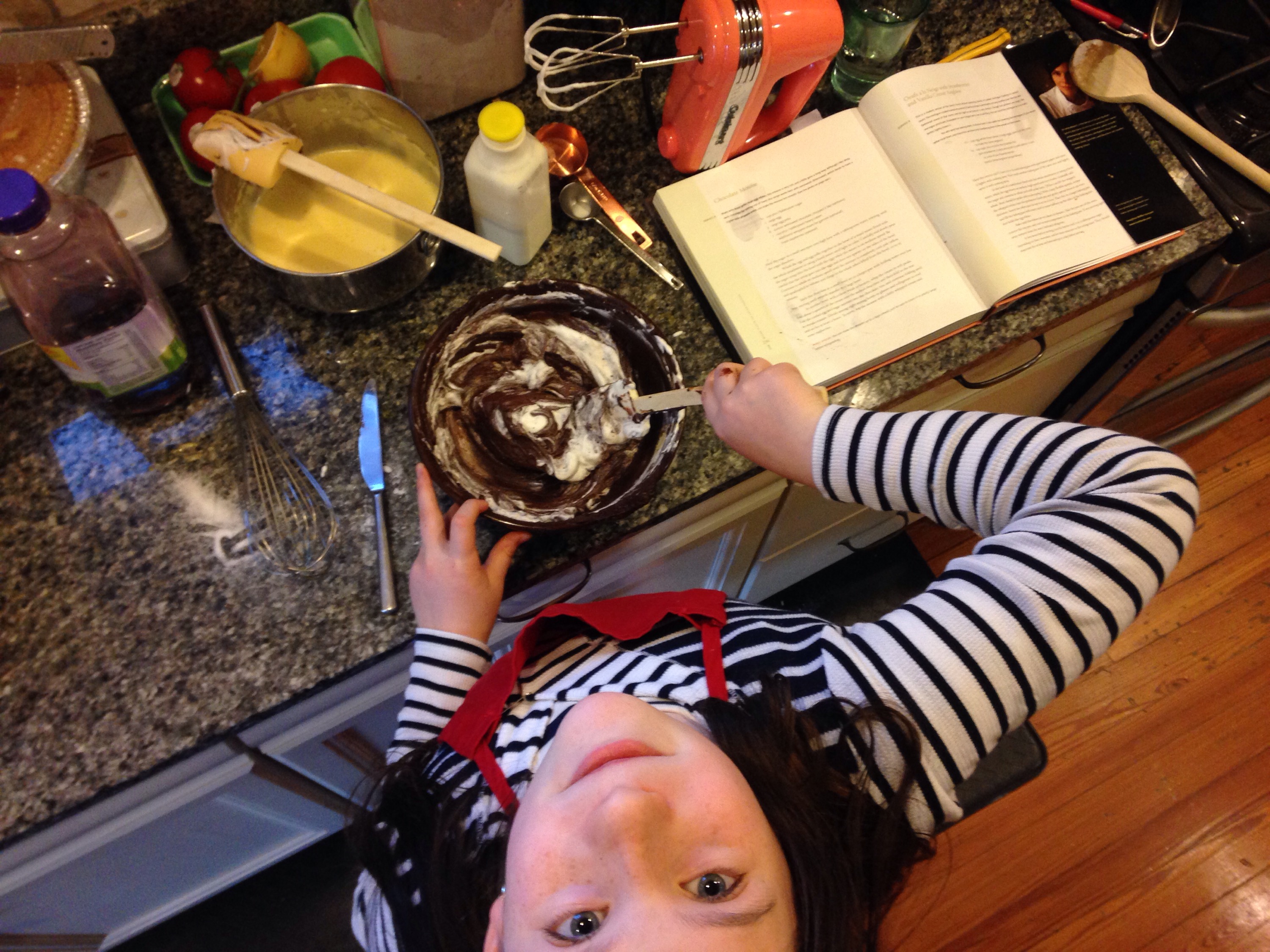 Isabelle made most of the sweets on her own. I think she ran out of steam in the end so I helped with the crême brûlée and baked the cookie crusts for the pizzas. So, once again I was sous to my little pastry chef.
