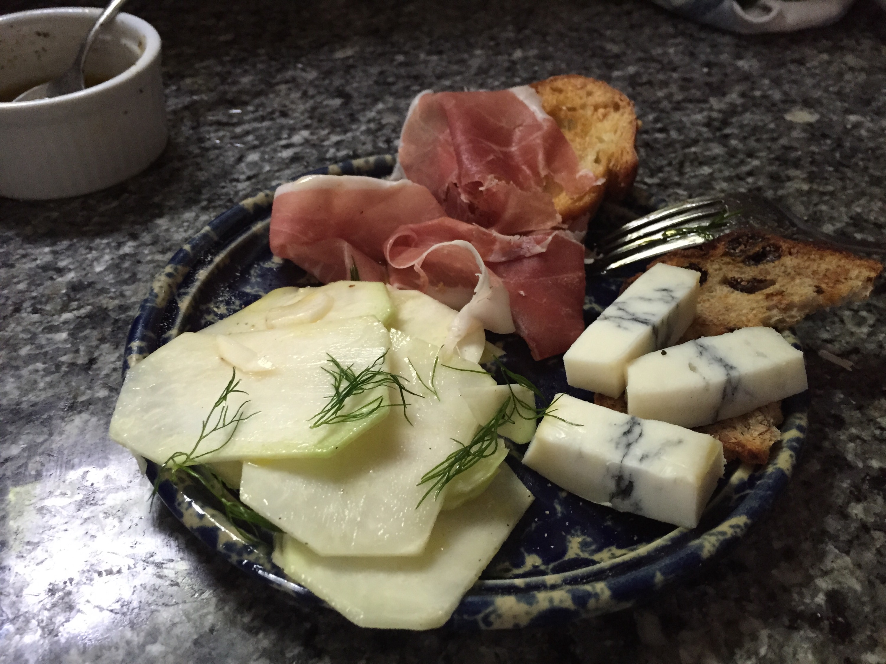 I love kohlrabi and before we started our CSA many years ago, I had never eaten before. Now, I look forward to seeing it sitting in the CSA baskets in the cool pick up area around the corner from the tree swing and hammock. This simple recipe is a great way to enjoy the slightly sweet, clean tasting vegetable that looks like a bulb. The common vegetable it reminds me most of is broccoli. For this recipe, I use a mandoline, but you can make it more of a slaw and use a grater as well.
