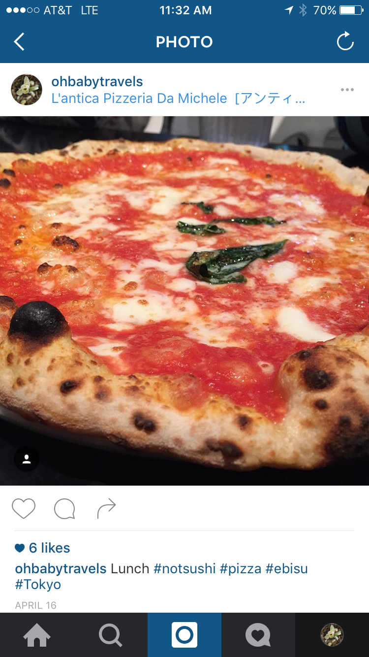 Here is the pizza we had in Tokyo at L’Antica Pizzeria da Michele. I’d show you the margherita pizza from Ciao Pizza & Pasta, but it was devoured before I could grab my camera. You’ll just have to trust me when I tell you they were very similar.