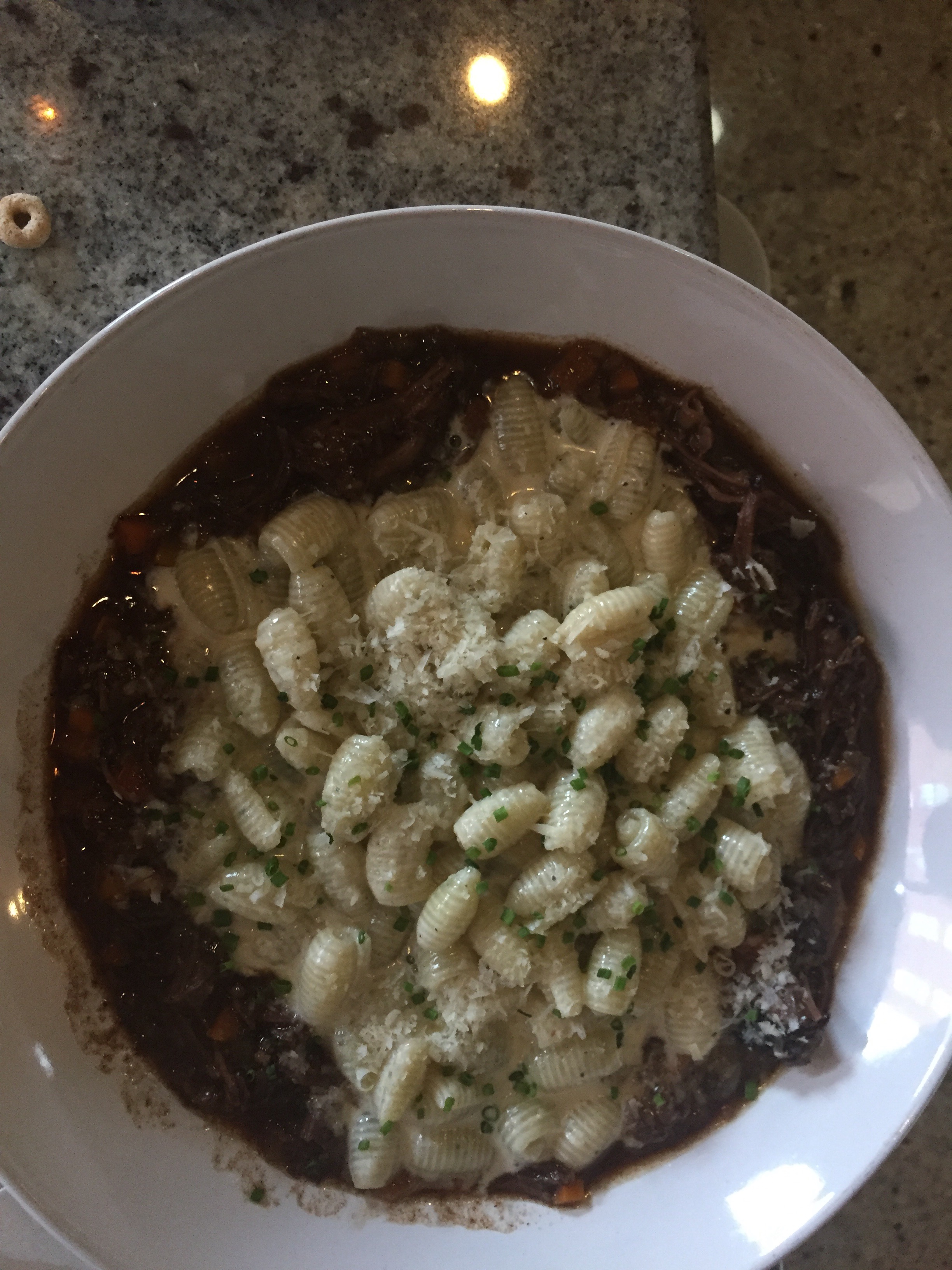 Next, we sampled the gnocchetti. These miniature gnocchi were almost like tightly wound shells that curled into themselves. They were served with a generously meaty red wine braised short rib and vegetable sauce.