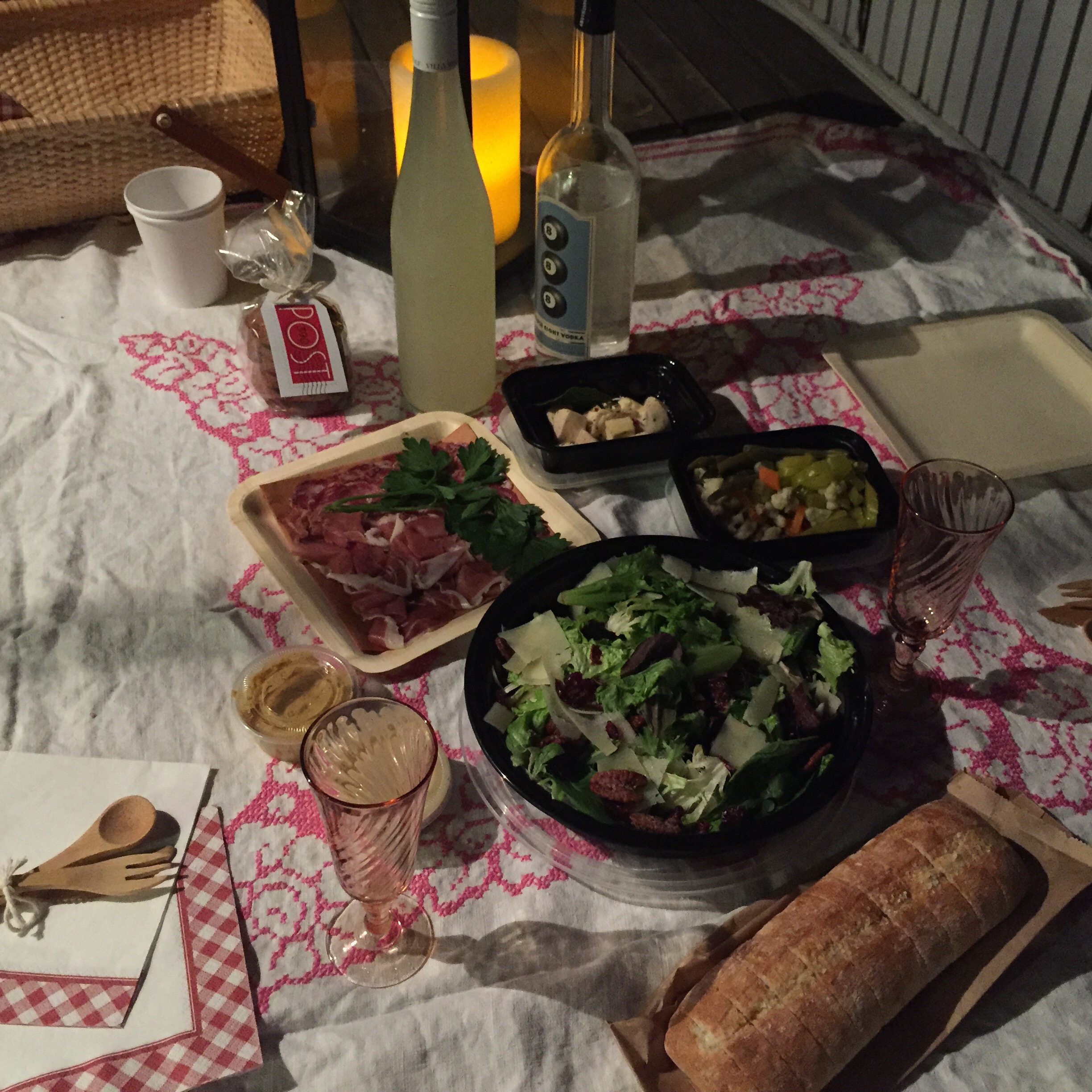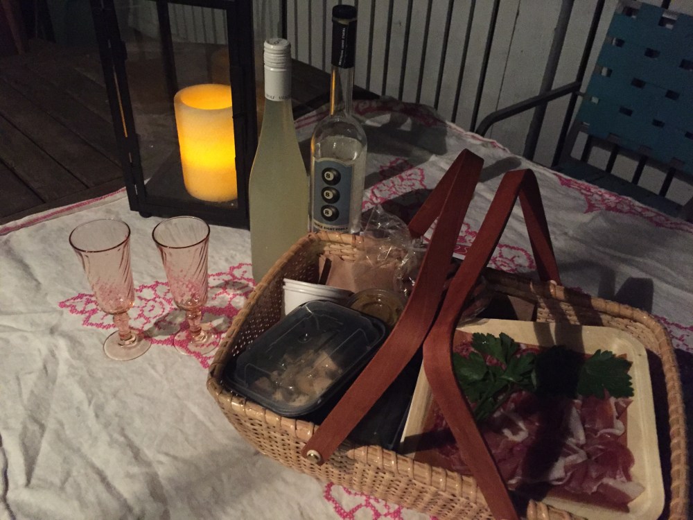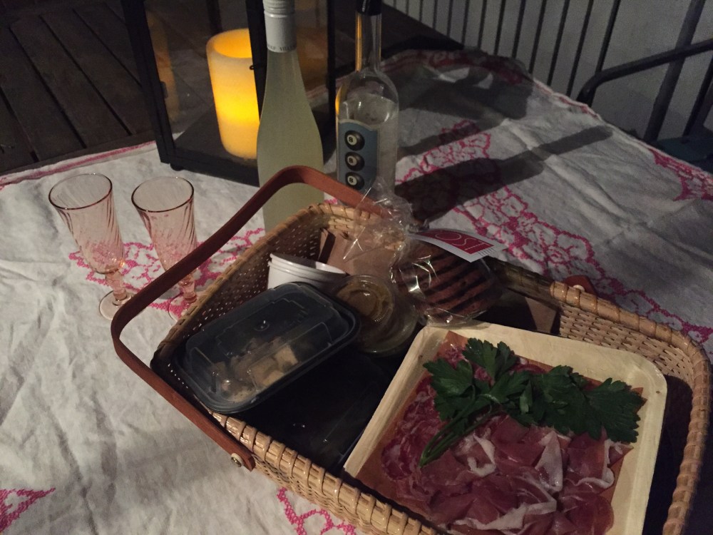 Post 390, a place I pass a million times a month driving to and from Boston Ballet, invited me to try their new picnic basket offering and it just happened to be a few days before my 15th wedding anniversary. I took them up on their offer and we had such a wonderfully delicious, relaxing dinner for two all set out in the cutest little basket.