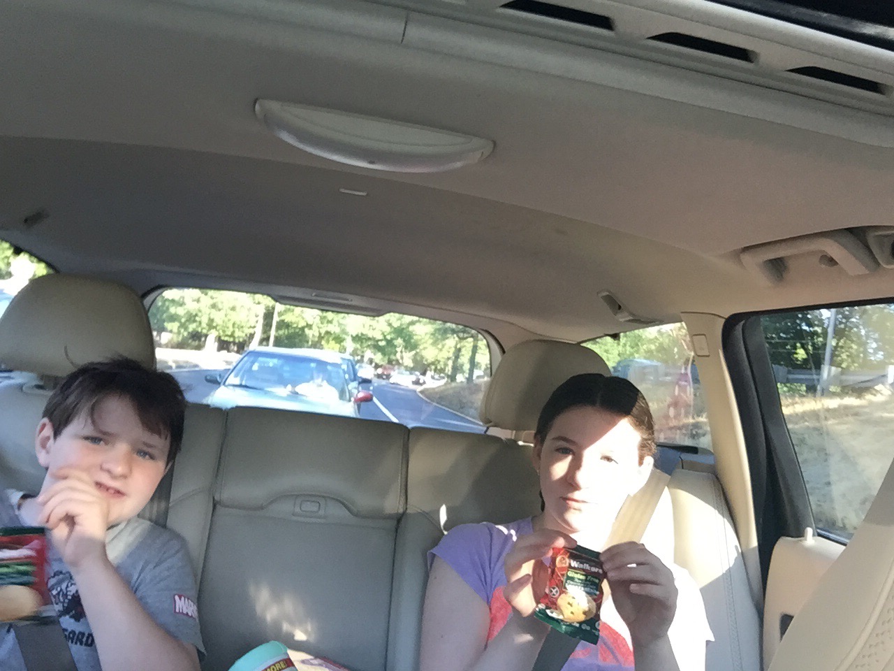 Part of parenting is keeping your children well fed and hydrated I’ve been told, and in the summer that means stocking a cooler with drinks. The car gets too hot for most fresh food, so I keep the cooler full of seltzer (the cooler keeps the seltzer from getting too hot, but it doesn’t keep them cool unless I add ice every day, but who has time for that?!). I keep the cooler full and it seems to work. If I have time to stop at home before picking up the kids, I will fill two cups with ice so they can pour their drinks over ice. I will also grab a few carrots, celery sticks, a pint of berries or something fresh. As for the rest of it, I try to keep snacks that can withstand the heat in a bin in the car.