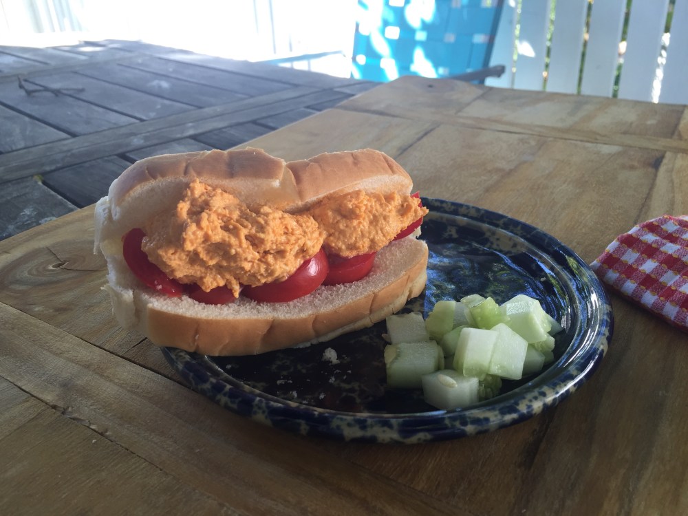 The Sriracha Chicken Salad will be my go to quick sandwich filling. This time of year our kitchen counter is covered in bowls of tomatoes from Lindentree CSA. We have leftover hot dog buns, because the number of buns never matches the number of hot dogs. For a quick lunch, I slice up some tomatoes, put a scoop of the sriracha chicken salad over the tomatoes and lunch is made. Dan just likes to eat spoonfuls of the chicken salad right out of the fridge when he gets home from work because he is the kind of guy who needs a substantial snack before dinner.