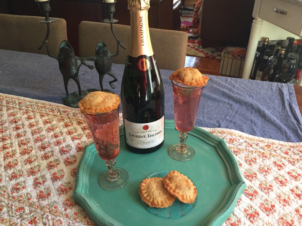 You can have a lot of fun with the cocktails and pies. You just need the right cup and make sure you cut your pies to be able to rest on top of the cup. The pies will shrink a little as they cook. Go colourful with these cups, or have a Japanese cherry blossom theme and pour the cocktails from a tea pot. I also love the simple lines and modern twist on the Champagne flute with the words going up the glass. They would look perfect with a pink cherry cocktail to offset the letters. Use a flute for the Champagne cocktail and a coffee, tea or espresso cup for the Bourbon cocktail. The golden flute below is plastic so perfect for an outdoor party by the fire pit or for the kids’ Shirley Temple.