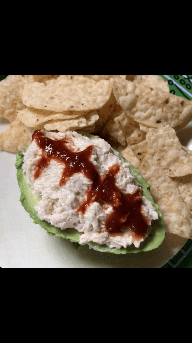 Chicken Salad Stuffed Avocados with Hot Sauce (serves 2)