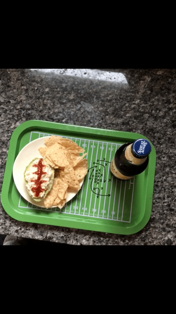 These chicken stuffed avocados are a quick and easy way to keep the party going without missing any of the game. Make a tray of them for a crowd or a plate for two.