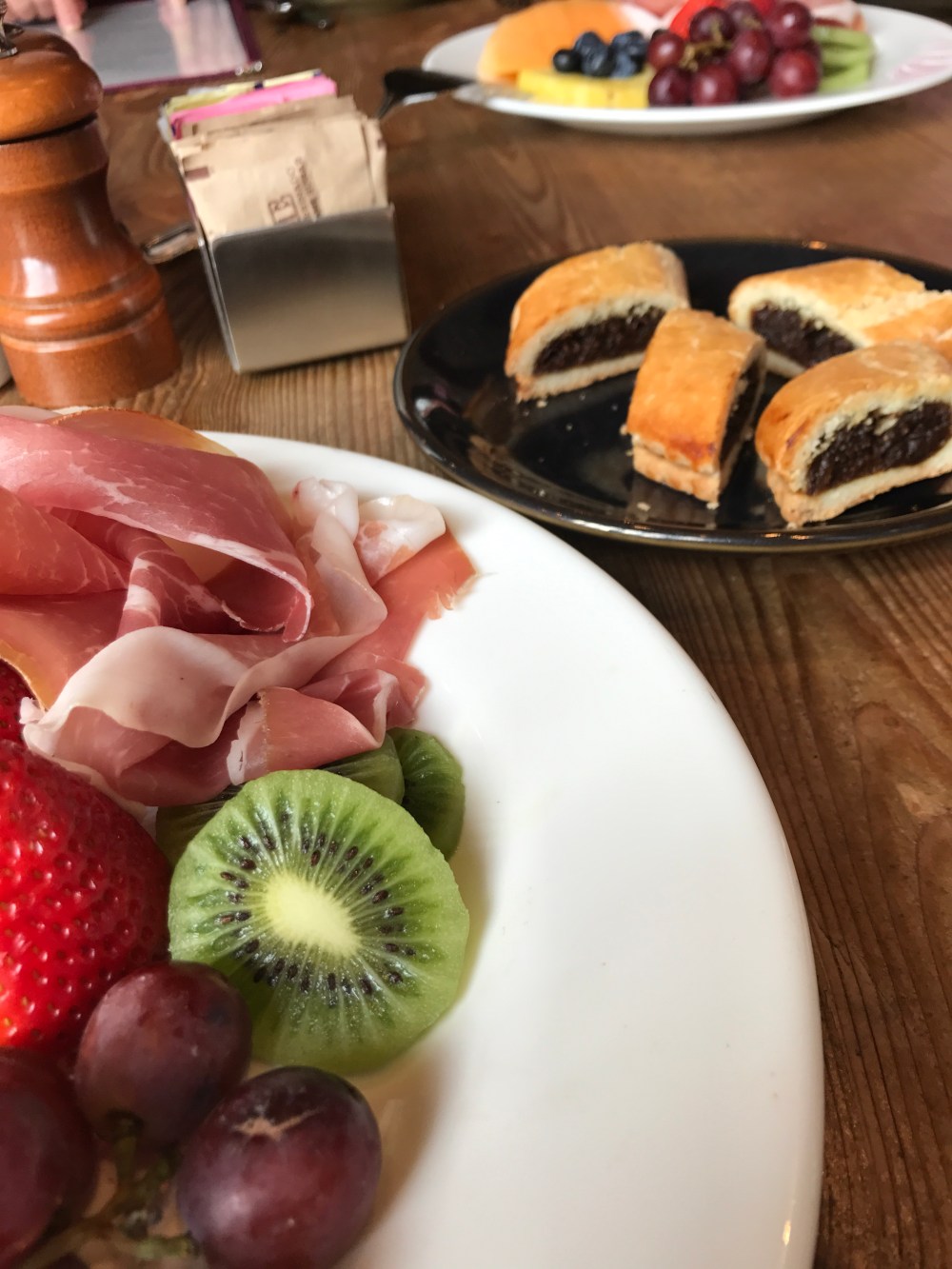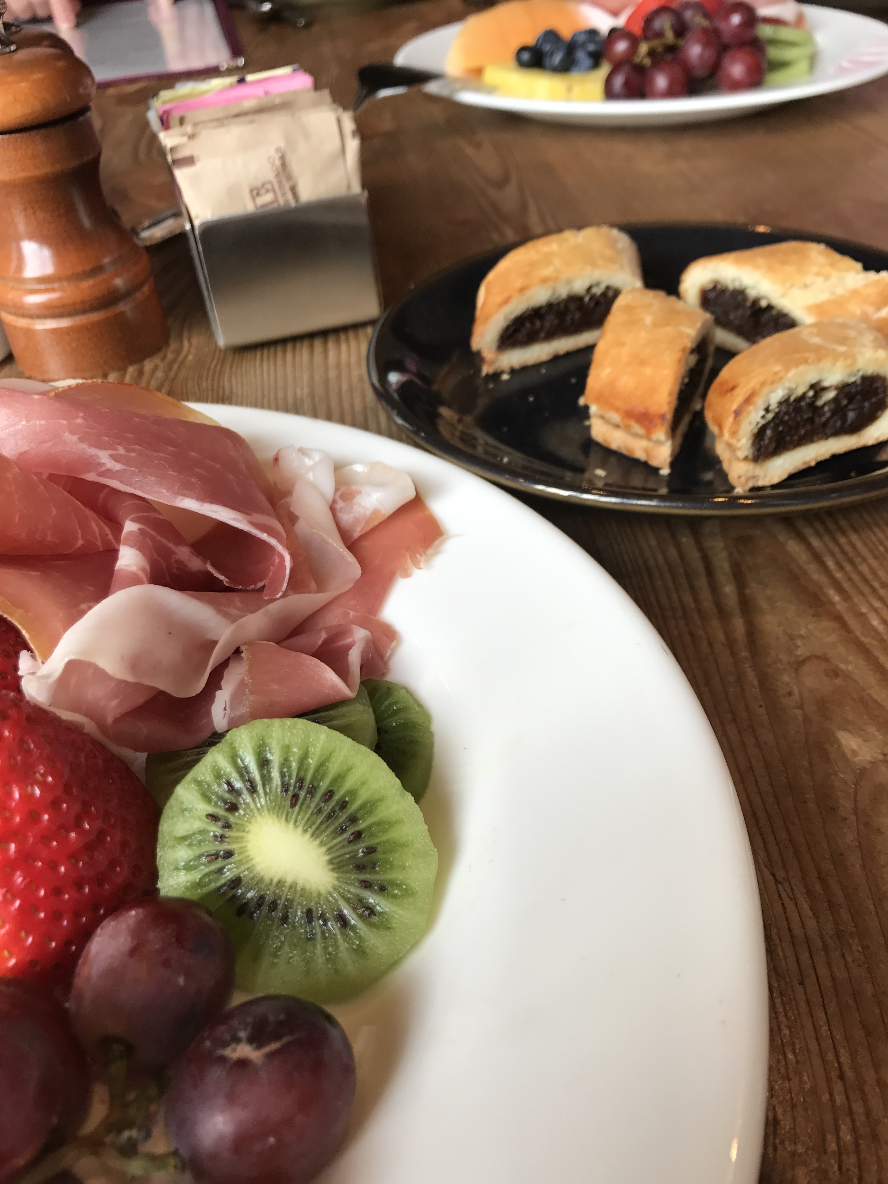 The pancakes were lovely. A perfect silver dollar with a soft middle and crispy edges topped with a dusting of powdered sugar and served with maple syrup. We will all be dreaming about these; I think they’re the new standard. I’m not sure I have had better from a restaurant.