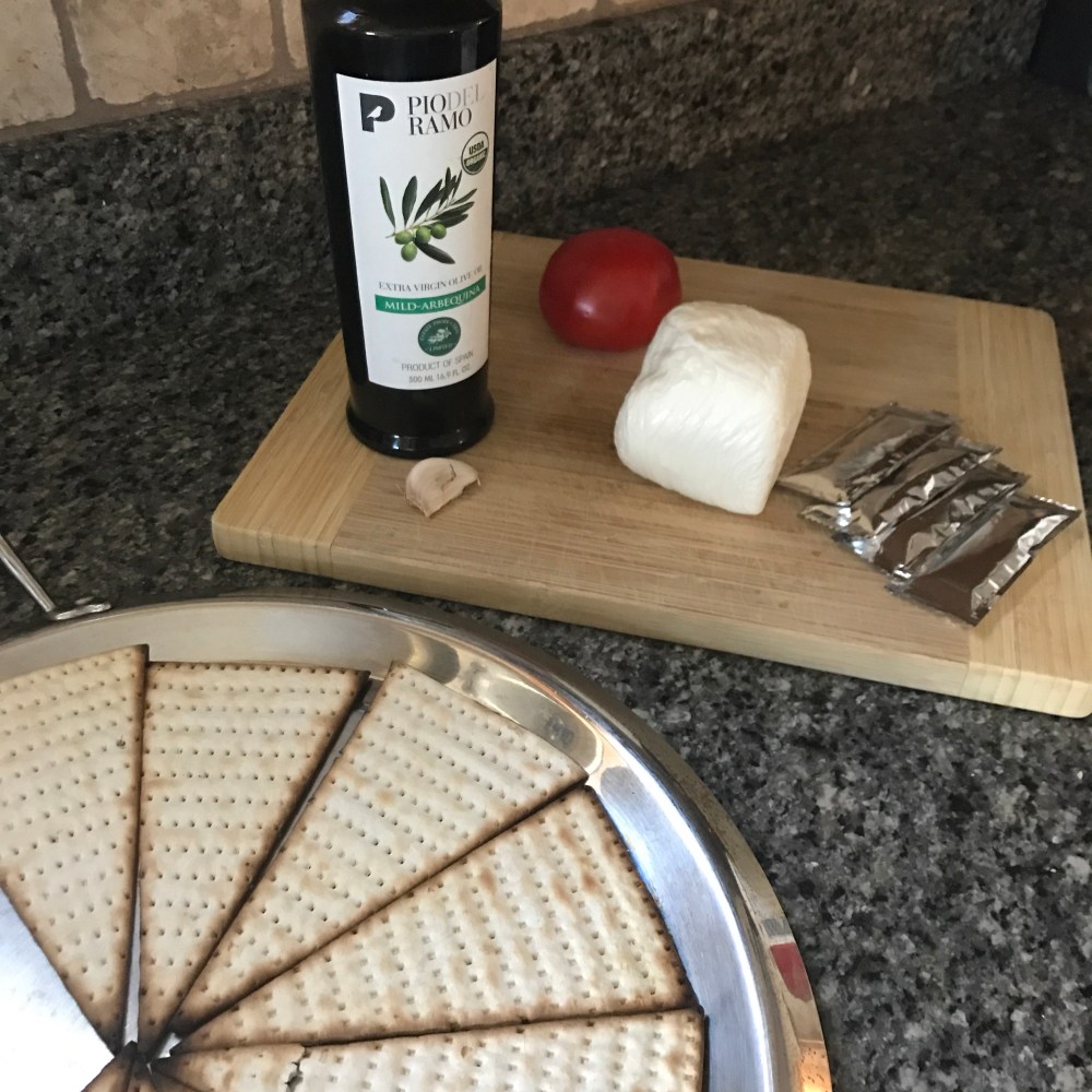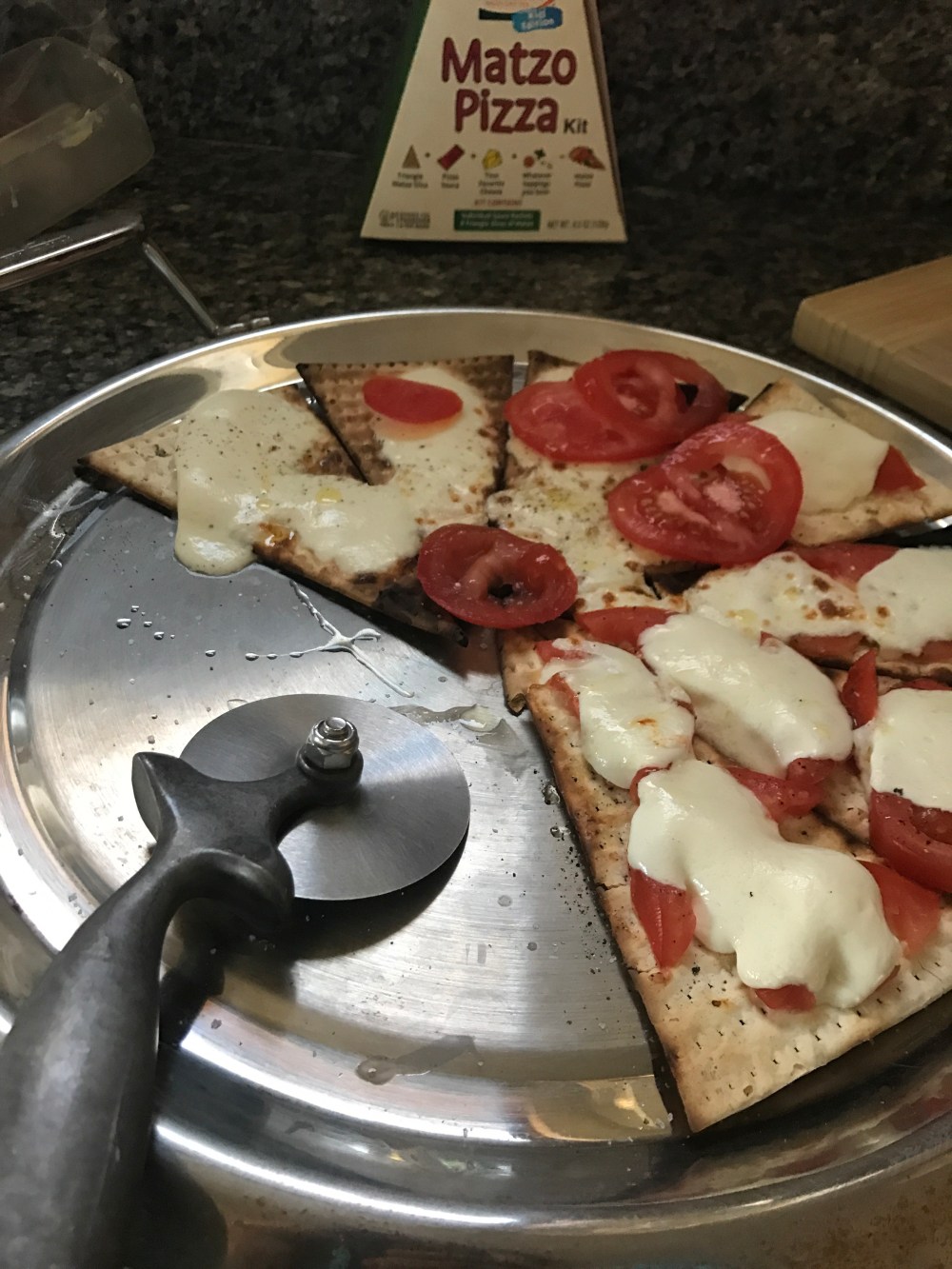 My daughter and I love matzoh. My son loves pizza and is ambivalent about matzoh. Yesterday, I played with the Manischewitz kits and added a little of my own twist. The leftovers were all gobbled up when the kids came home from school.