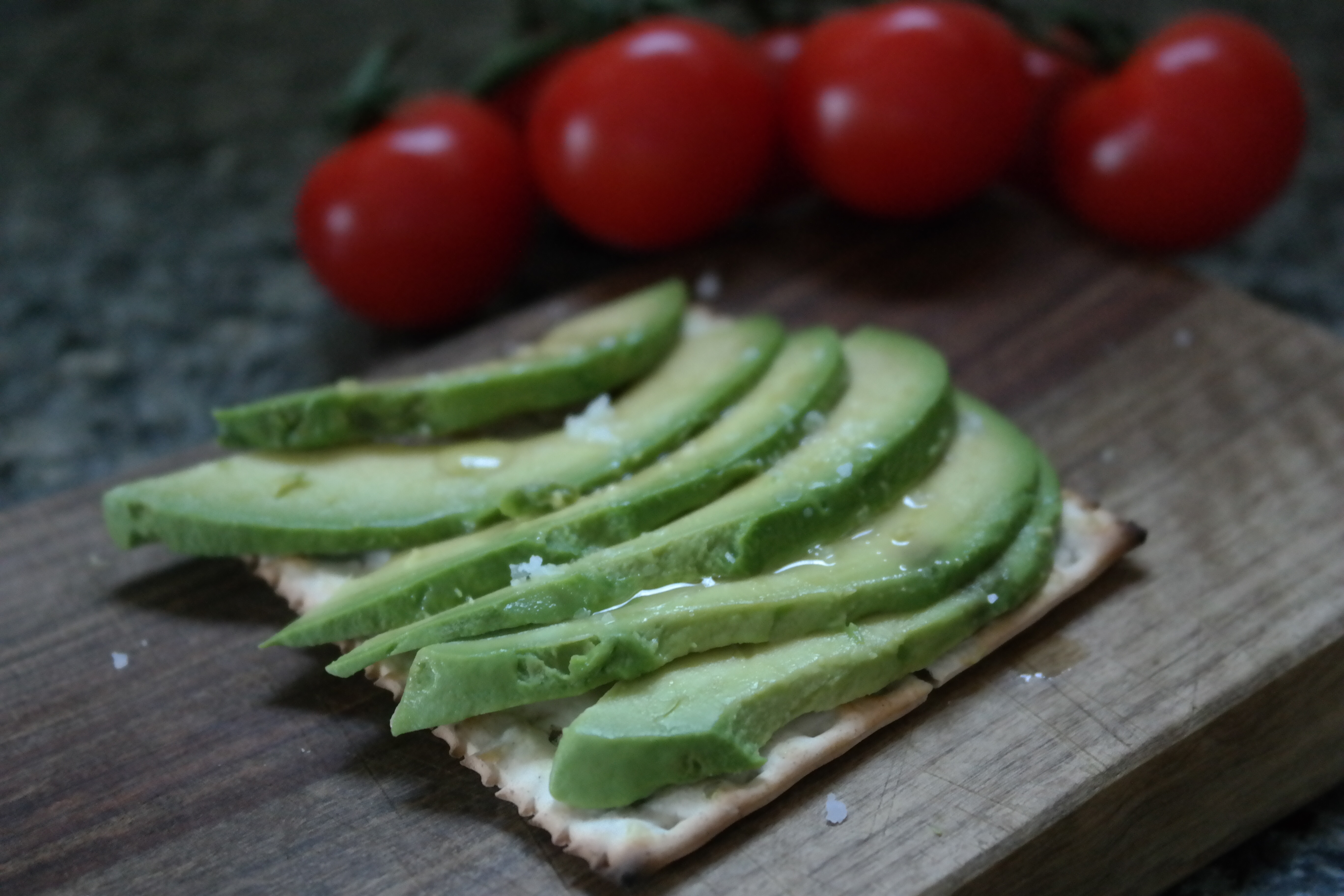 Ingredients: avocado, Kosher salt or Maldon salt, olive oil, matzoh
