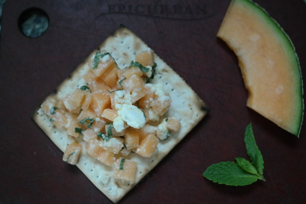 Ingredients: cantaloupe, feta, mint, a tiny squeeze of lime juice, honey, pinch of salt, matzoh